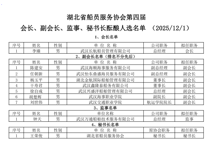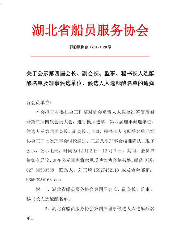 关于公示第四届会长、副会长、监事、秘书长人选酝酿名单及理事候选单位、候选人人选酝酿名单的通知